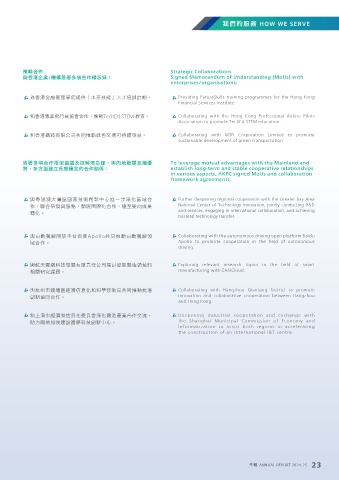 簽署多項合作框架協議及諒解備忘錄,與內地發揮互補優 To leverage mutual advantages with the Mainland and