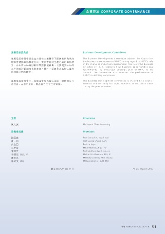 業務發展委員會由一位理事會成員擔任主席,現時共有八 The Business Development Committee is chaired by a Council