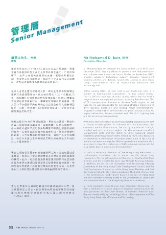 畢堅文先生於2017年12月起出任生產力局總裁,領導 Mr Mohamed Butt has served as the Executive Director of HKPC since