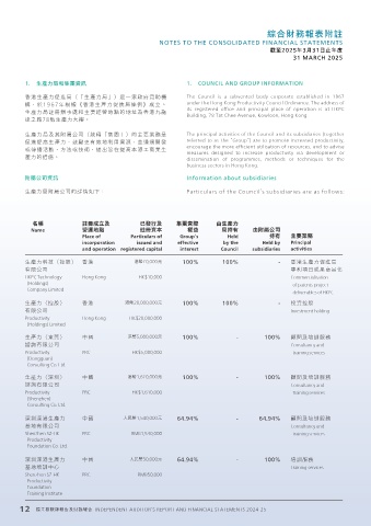 生產力局附屬公司的詳情如下: Particulars of the Council’s subsidiaries are as follows: