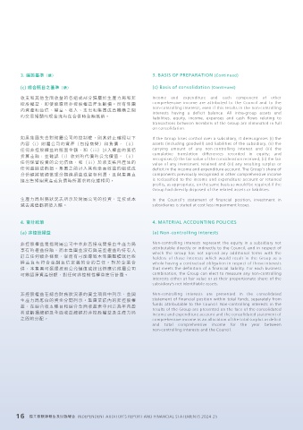 控股權益,即使能導致非控股權益產生虧損。所有集團 comprehensive income are attributed to the Council and to the