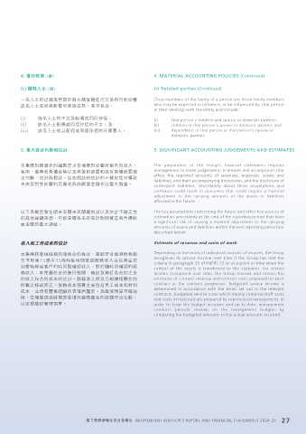約收入和合約成本的估計。服務收入預算乃根據相關合約 estimates of contract revenue and contract costs prepared for each