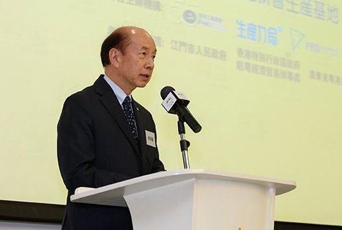生產力局主席劉展灝及工總主席鄭文聰教授在研討會上致開幕辭,江門市人民政府商務局局長周文則介紹當地的發展優勢和機遇。