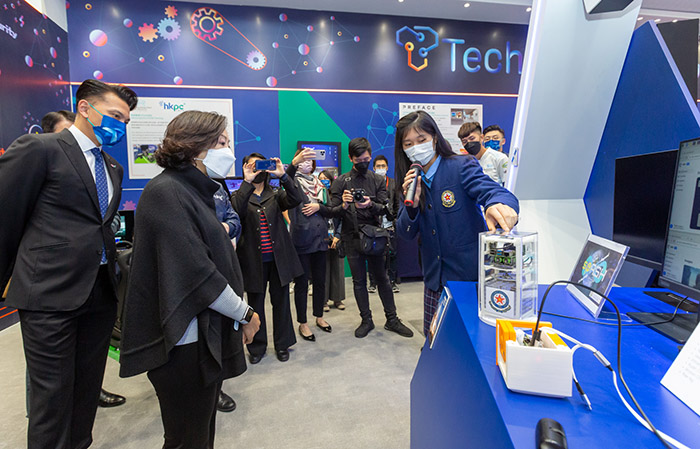 我們亦於活動上舉行了香港特別行政區成立25周年慶祝活動之一 「vHK都會之旅」AR創作比賽的頒獎禮,並公布較早前進行的「全港家長教師STEM網上問卷調查」結果。調查顯示家長及學界對新興科技及未來技能的看法一致,以人工智能機械學習、數據分析和網絡安全為首三位。我喜見家長及教師對於新科技及未來的態度積極和具前瞻性,期望學生能夠學習和應用高端科技,裝備未來。