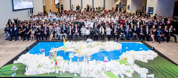 香港特別行政區行政長官林鄭月娥、生產力局主席林宣武及一眾主禮嘉賓和參與全港中學生3D打印設計比賽的師生代表合照。前為締造健力士世界紀錄的維港3D打印模型香港特別行政區行政長官林鄭月娥、生產力局主席林宣武及一眾主禮嘉賓和參與全港中學生3D打印設計比賽的師生代表合照。前為締造健力士世界紀錄的維港3D打印模型